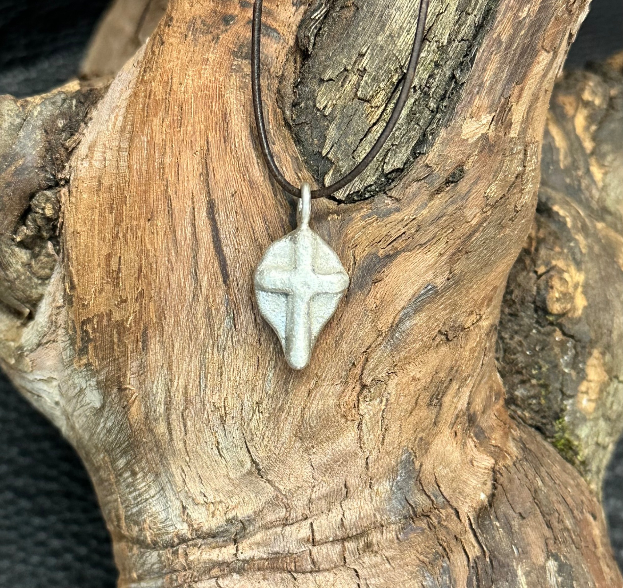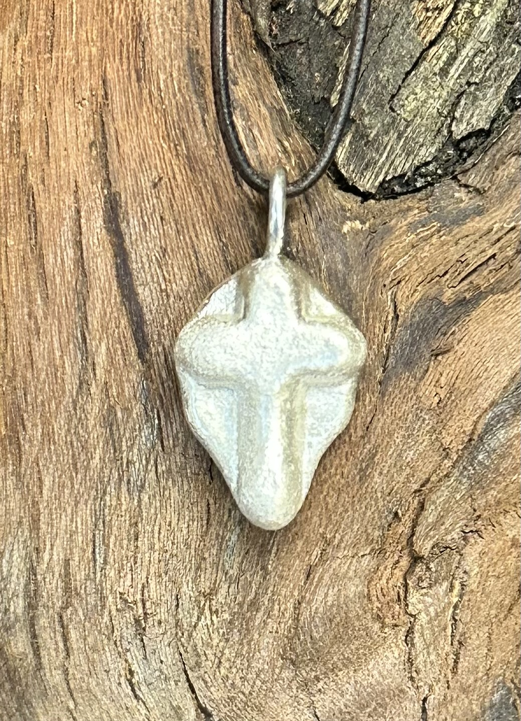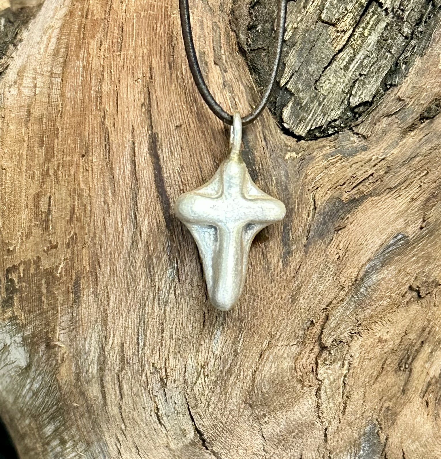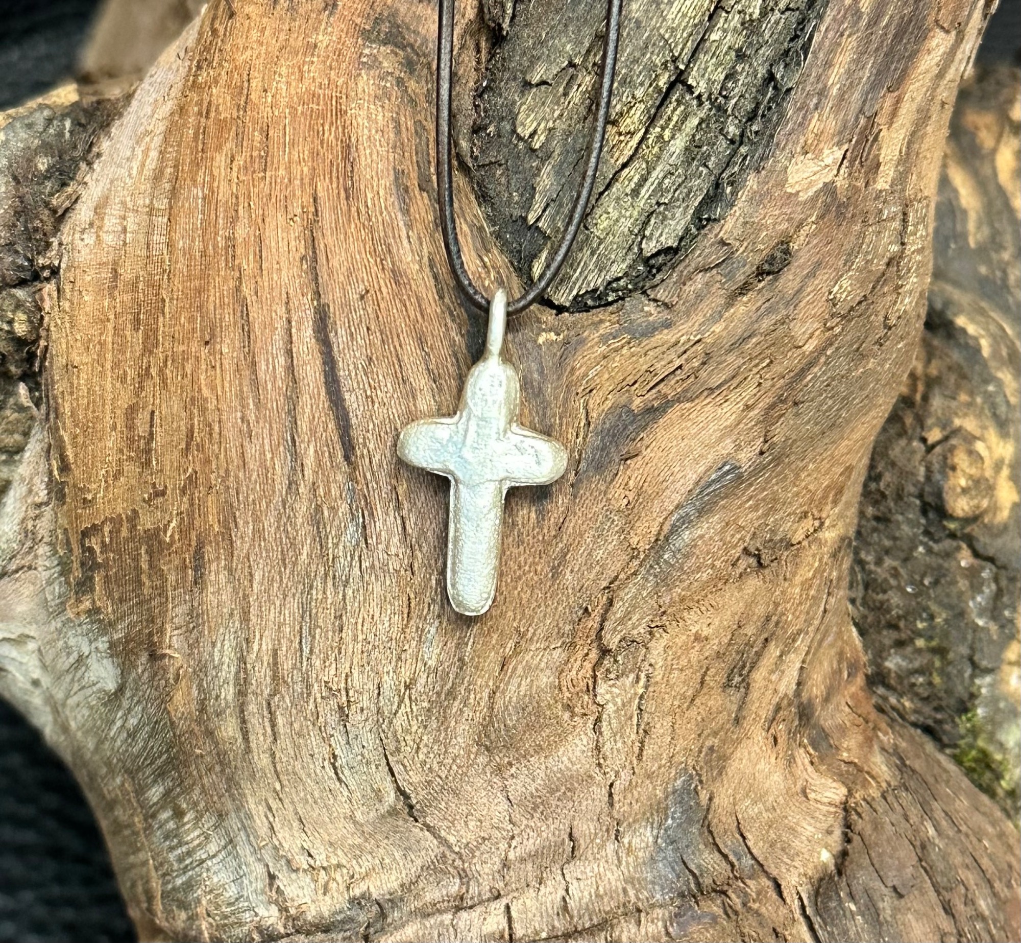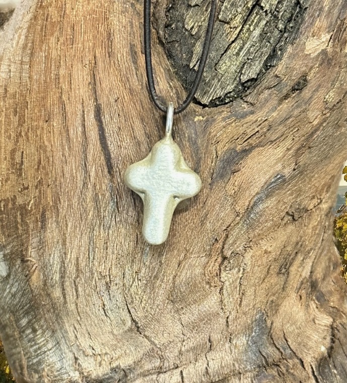 Silberkreuz aus 925er Silber ca. 7 gr. Oberfläche gebürstet, Maße: h 32 mit Öse, b 14, Öse 2,5 Knorzekreuz 1429
